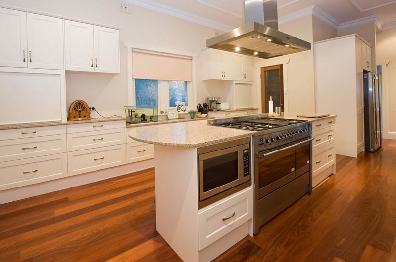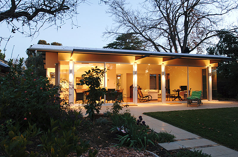 A very good example of collaboration between builder and client to renovate a 1920's gentleman's bungalow and upgrade a poorly planned 1970's addition. The new kitchen and family area with coffered ceilings has internal warmth and a pleasant outlook.